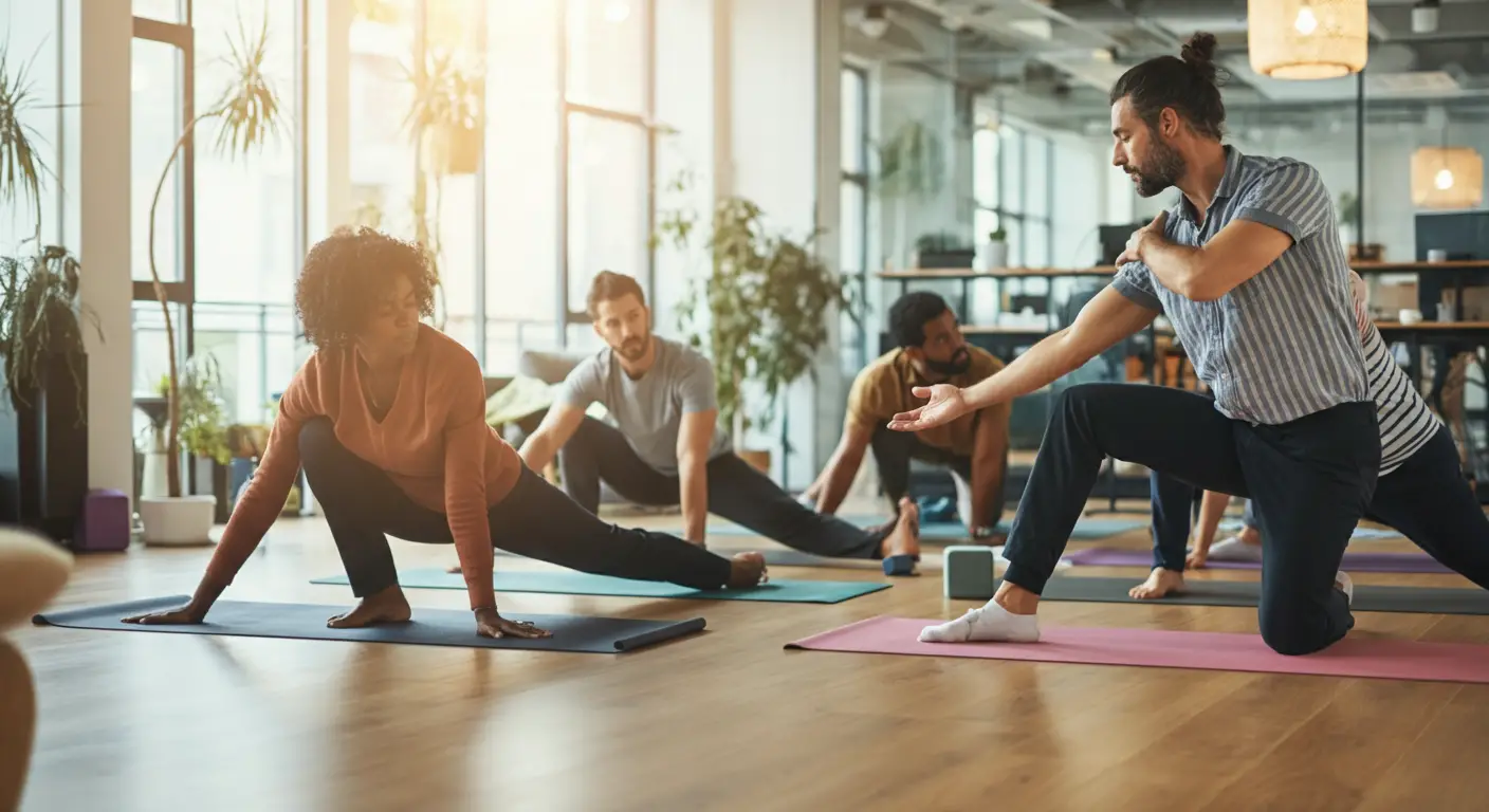 Engage with our tailored yoga and wellness sessions in simple steps for your workplace health.